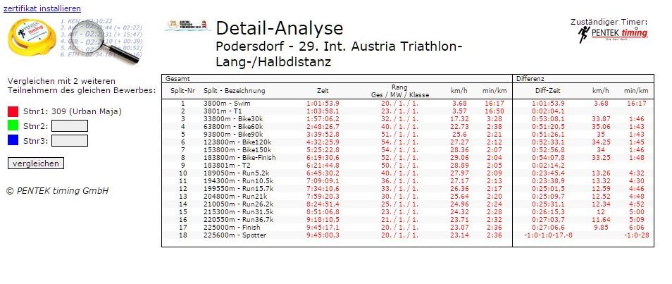 Urban je imala ukupno 20. vrijeme od svih prijavljenih natjecatelja u Austriji u obje konkurencije, dok među djevojkama drugoplasiranu Austrijanku Felkel ostavila iza sebe za gotovo sat vremena.