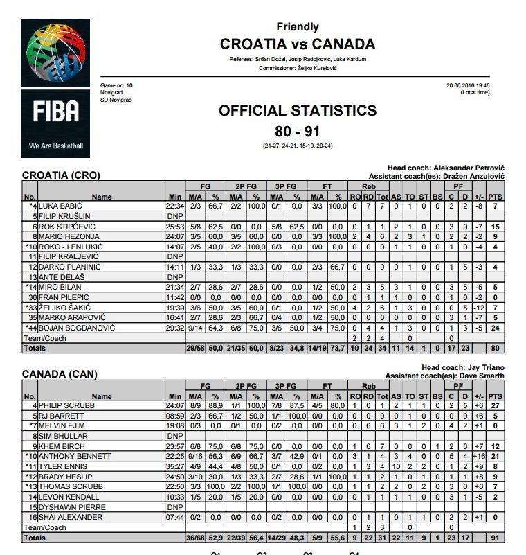 Za Kanadu se nije posebno radilo po pitanju skautinga već je poslužila kao odrađena trening utakmica koja je izborniku pomogla da vidi neke stvari.