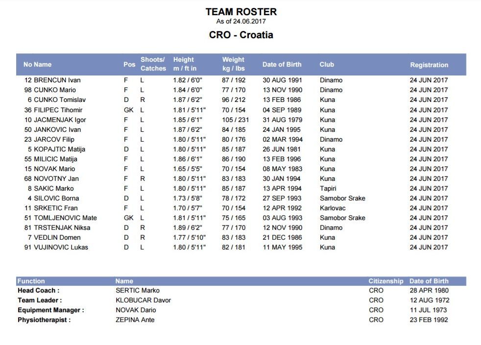 Hrvatska je natjecanje u skupini završila sa sva tri poraza i u četvrtfinalu će igrati protiv pobjednika grupe B, Češke ili Finske. U srijedu je dan odmora, četvrtzavršnica se igra u četvrtak, a polufinala i razigravanje od petog do osmog mjesta u petak. U subotu je završnica, utakmice za medalje, ali i ona za sedmo mjesto (11 sati), koja odlučuje o ostanku u elitnoj Top Diviziji svjetskog inline hokeja! (Foto: International Ice Hockey Federation IIHF)