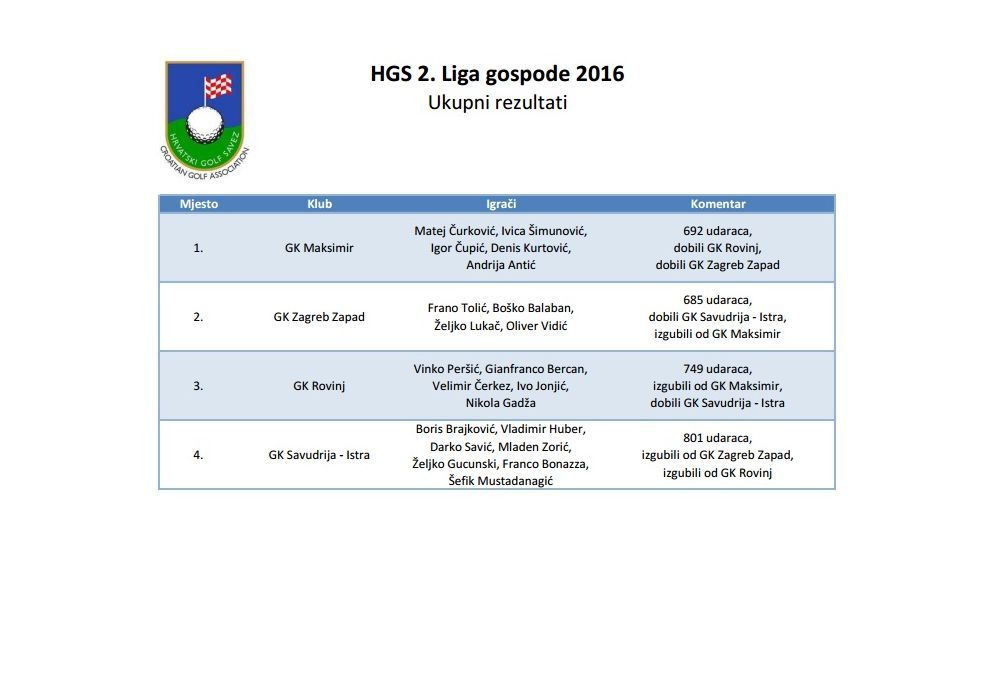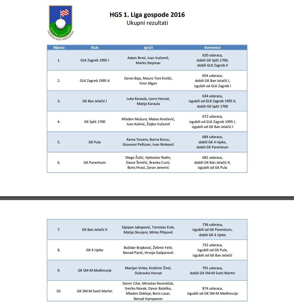 Proteklog vikenda odigrano je posljednje, šesto kolo golferske Lige gospode. Sudjelovalo je 14 ekipa iz 11 golf klubova, ukupno je igralo preko 50 najboljih hrvatskih golfera gospode i juniora.