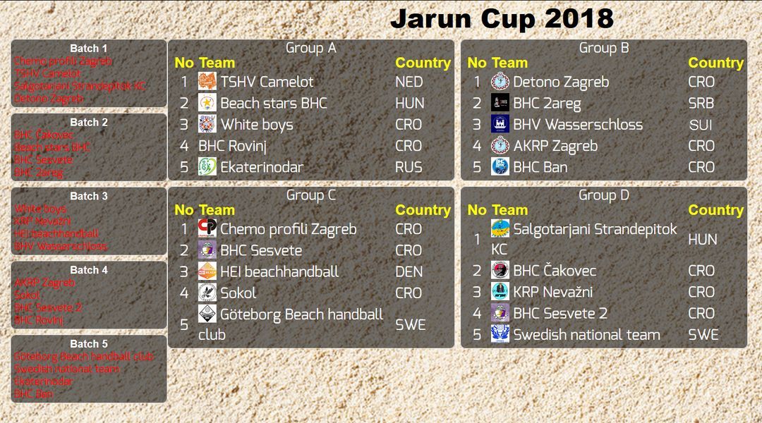 U rukometnom spektaklu na Jarunu možete uživati od 27. travnja pa sve do 1. svibnja pa pozivamo sve ljubitelje dobre zabave da navrate do pjeskaških terena i pogledaju ovaj atraktivan, zanimljiv i budući olimpijski sport.