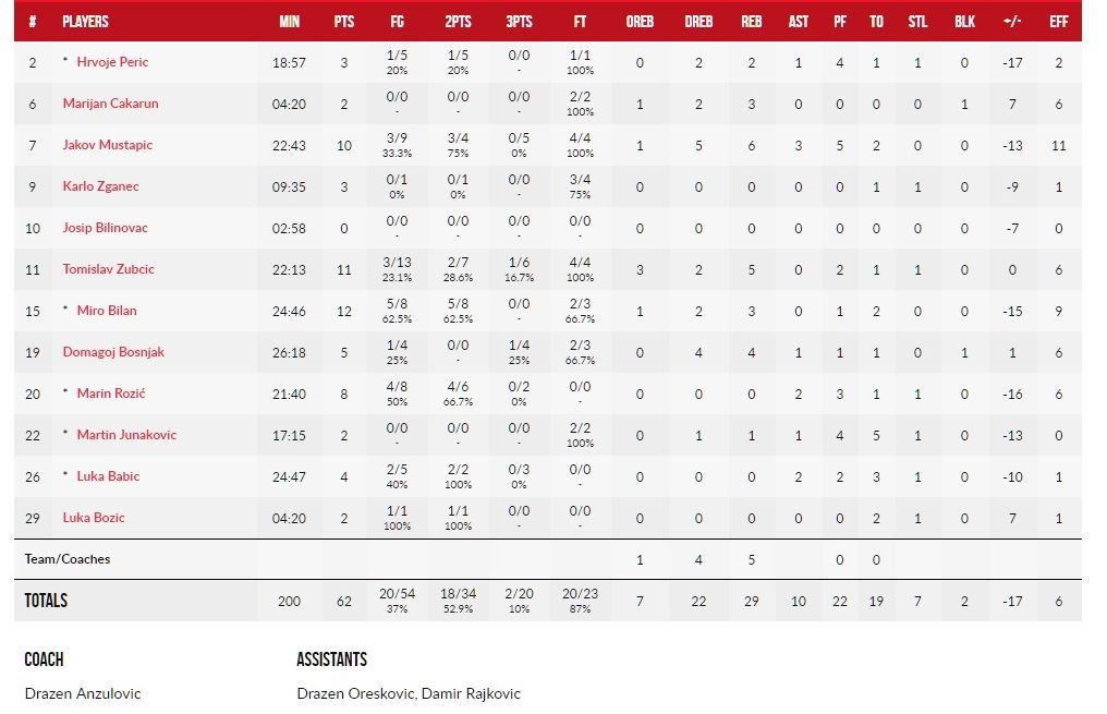 Hrvatska je tricu gađala katastrofalnih 2/20 te je imala nevjerojatnih 19 izgubljenih lopti.