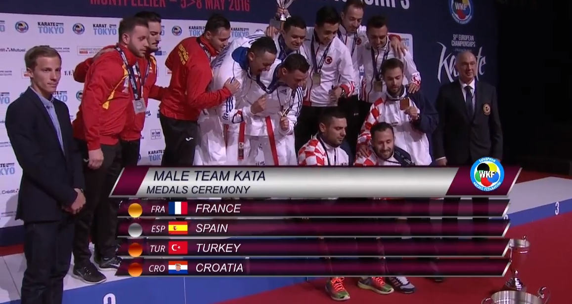 Hrvatska muška karate reprezentacija u katama (Ivan Ermenc, Damjan Padovan i Tomislav Stolar) osvojila je ekipnu broncu na Europskom prvenstvu u francuskom Montpellieru.